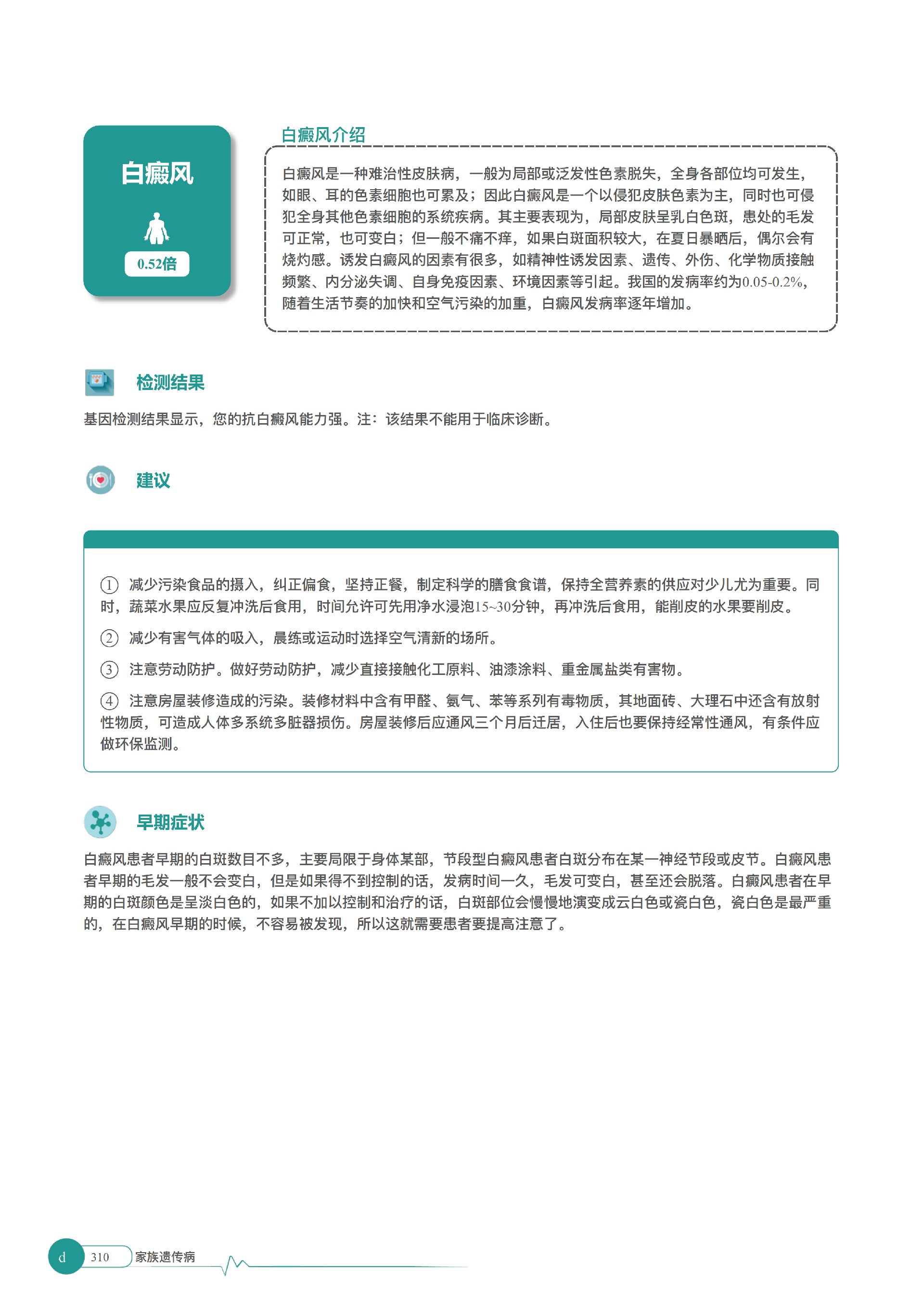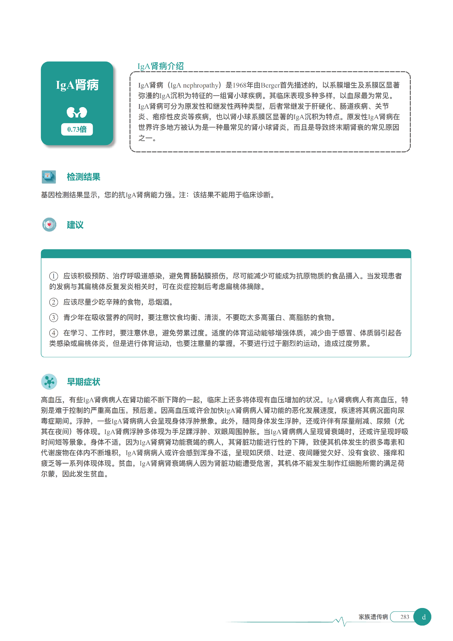 需特别说明的是,本报告仅针对本次送检样本,因个体差异可能存在假阳性或假阴性,且不能作为医学诊断结论,仅为基因层面的风险提示。我们已对您的个人信息与检测结果严格保密,未经您本人或法律法规要求,绝不向第三方披露。