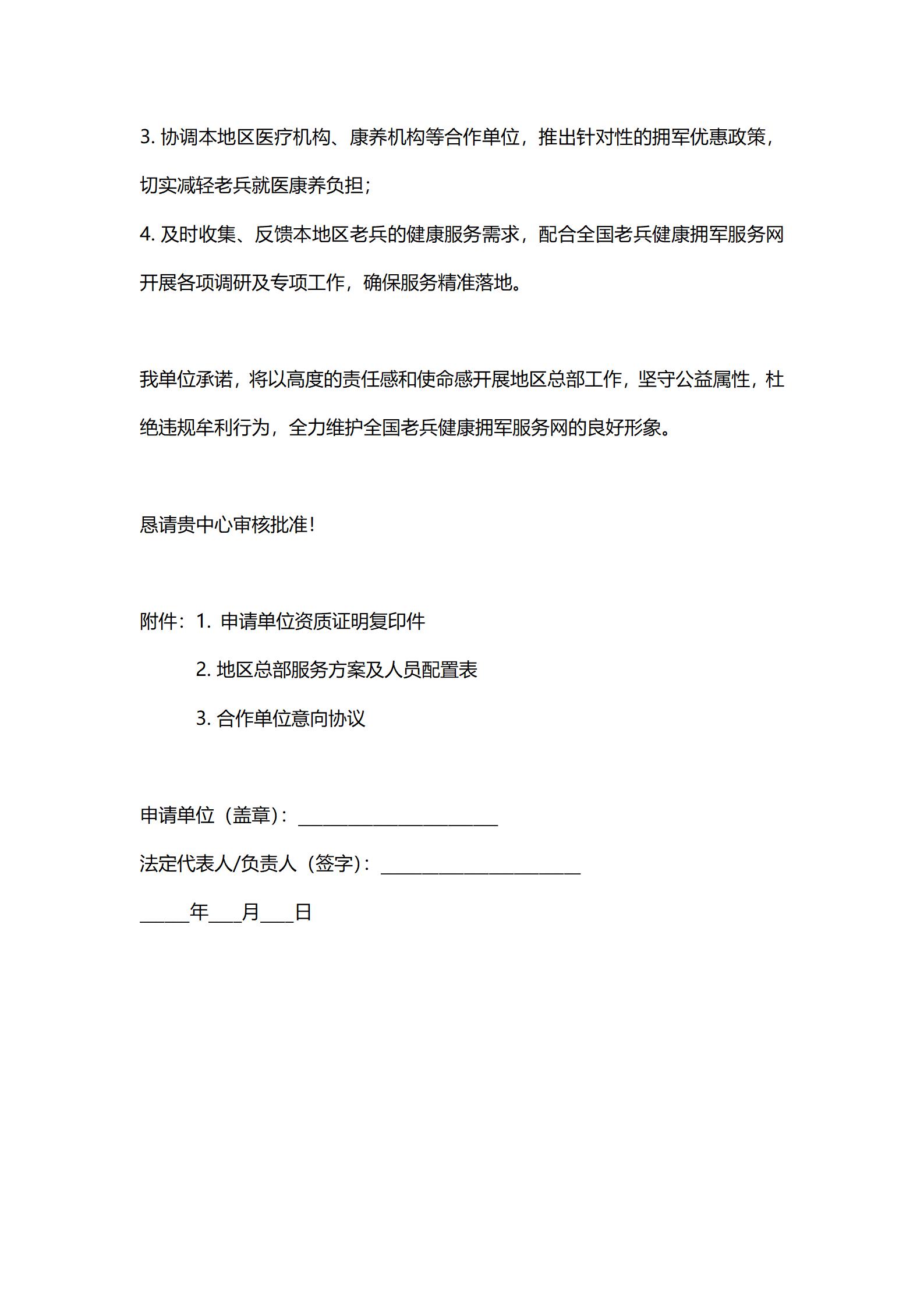 全国老兵健康拥军服务网地区总部设立申请书