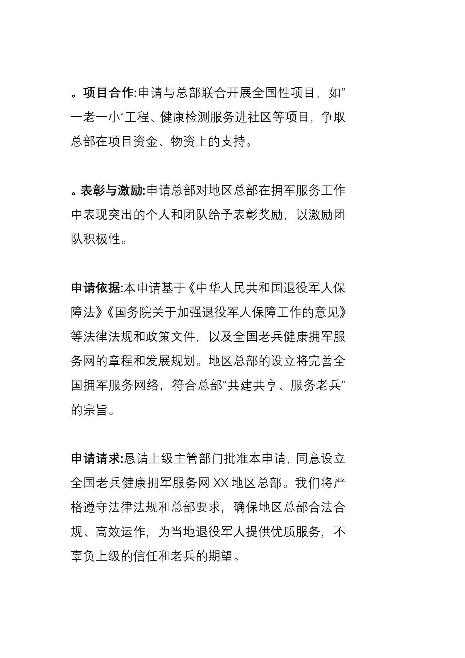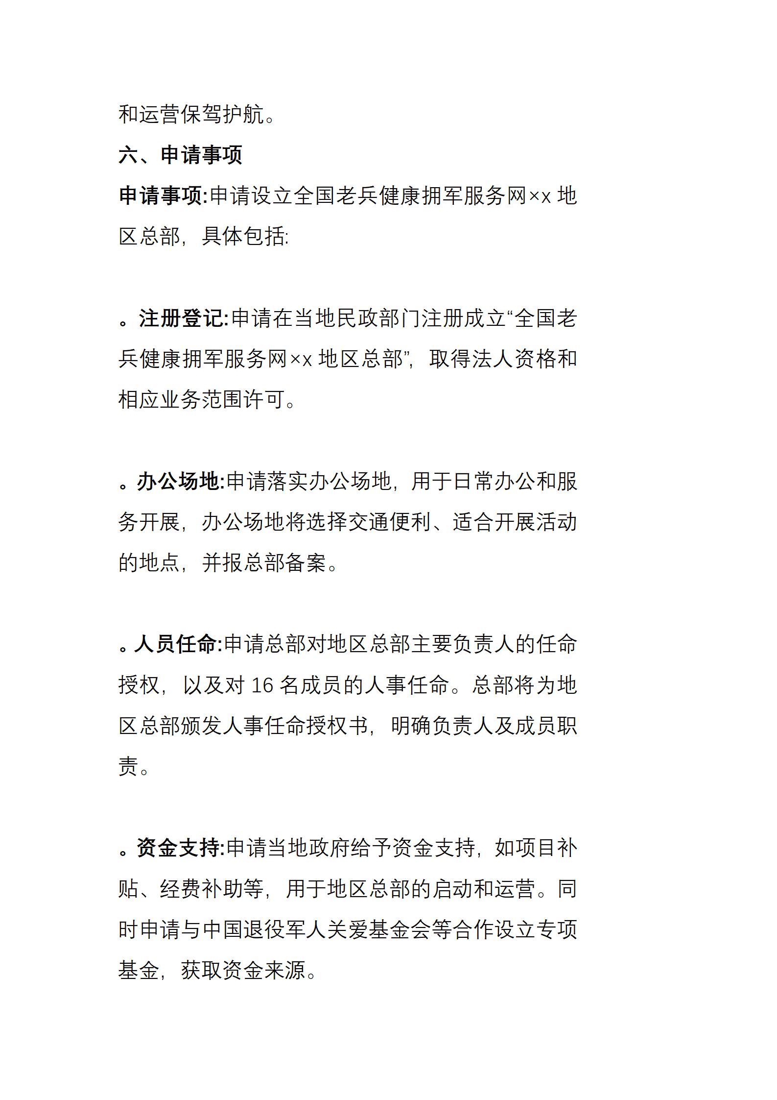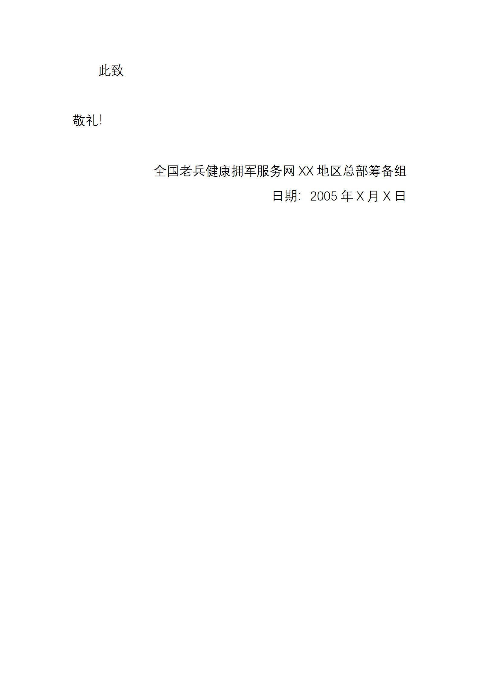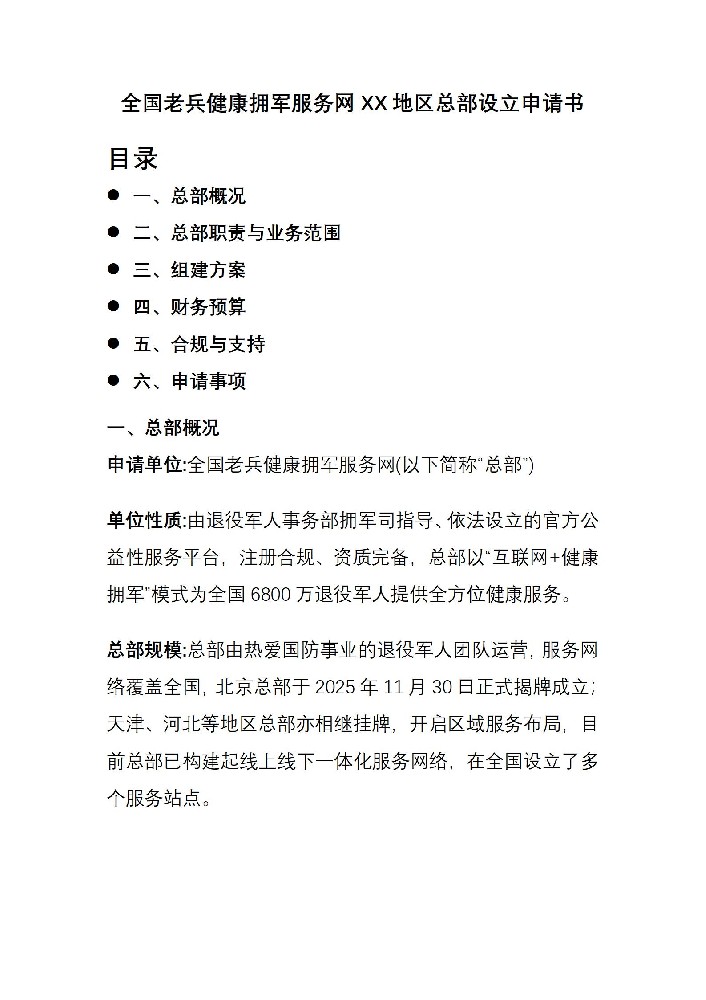 全国老兵健康拥军服务网XX地区总部设立申请书