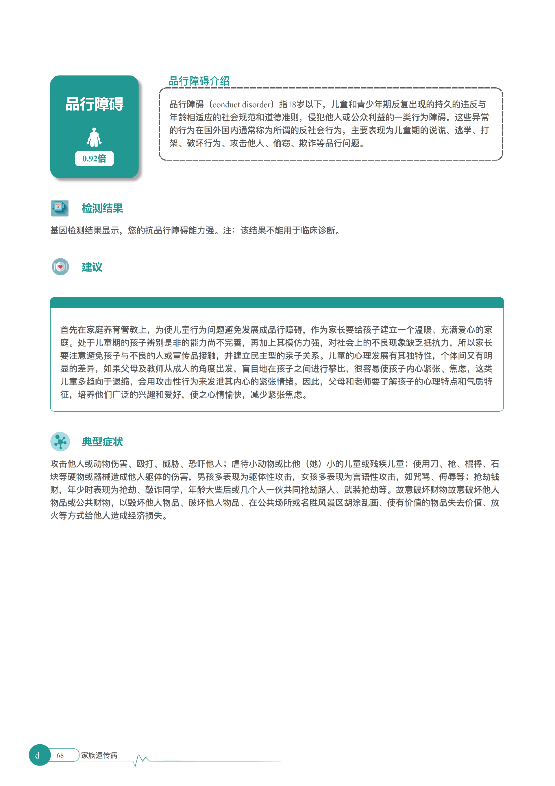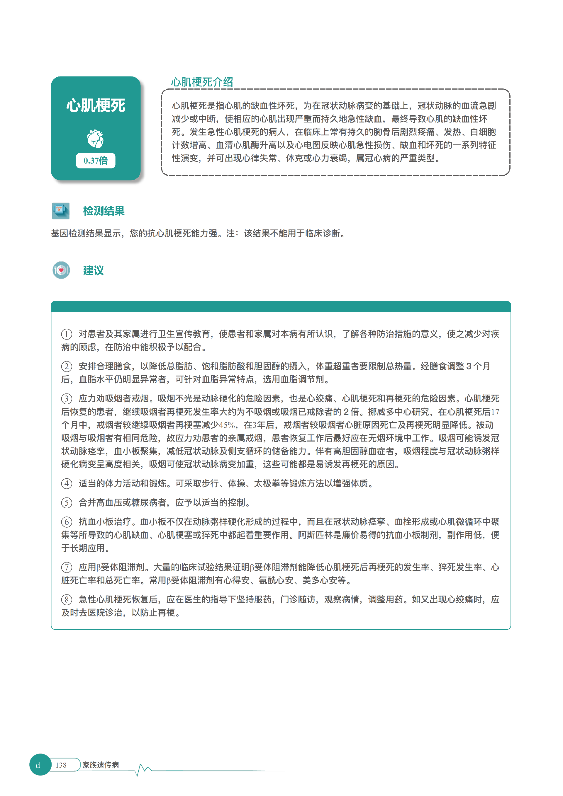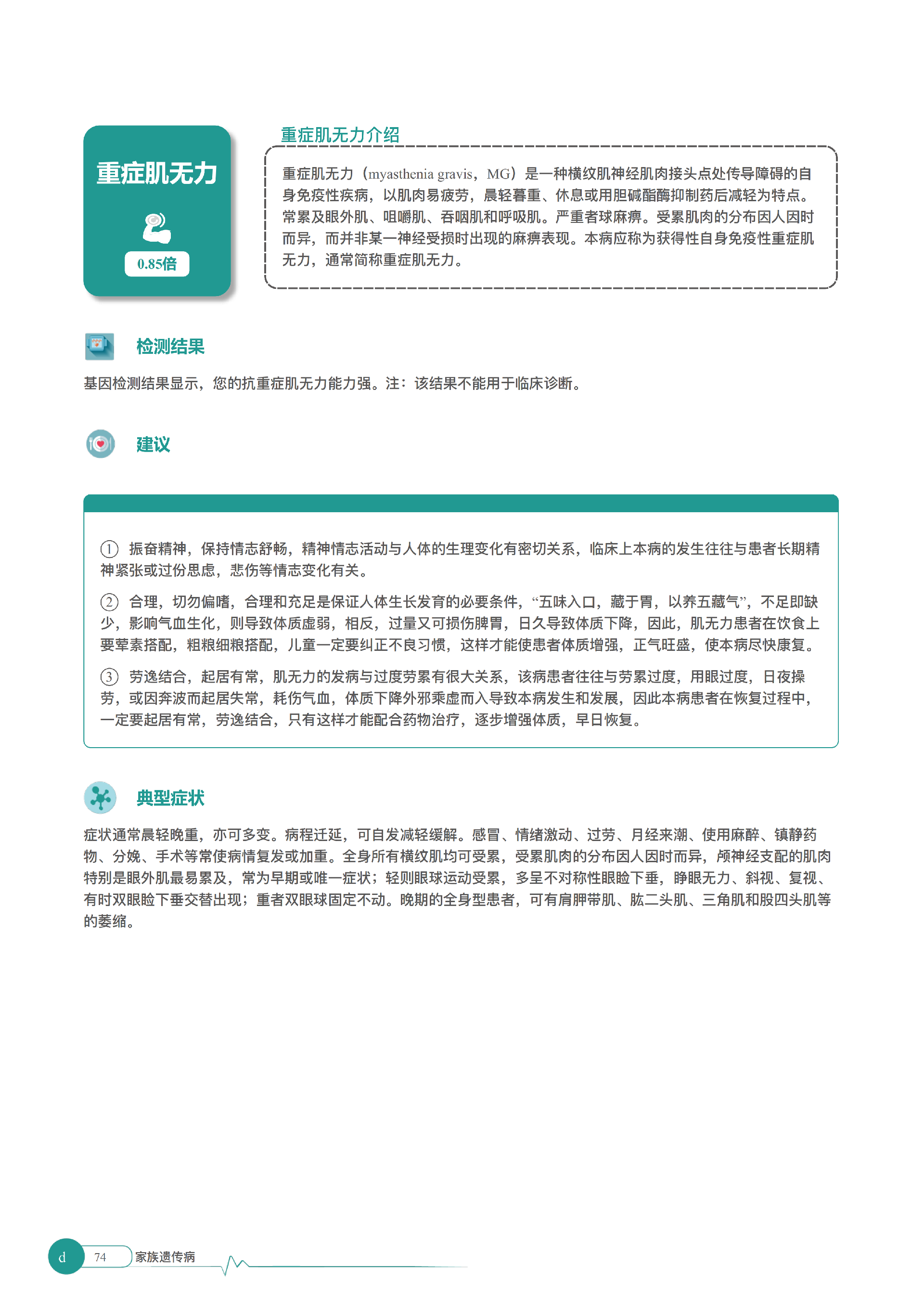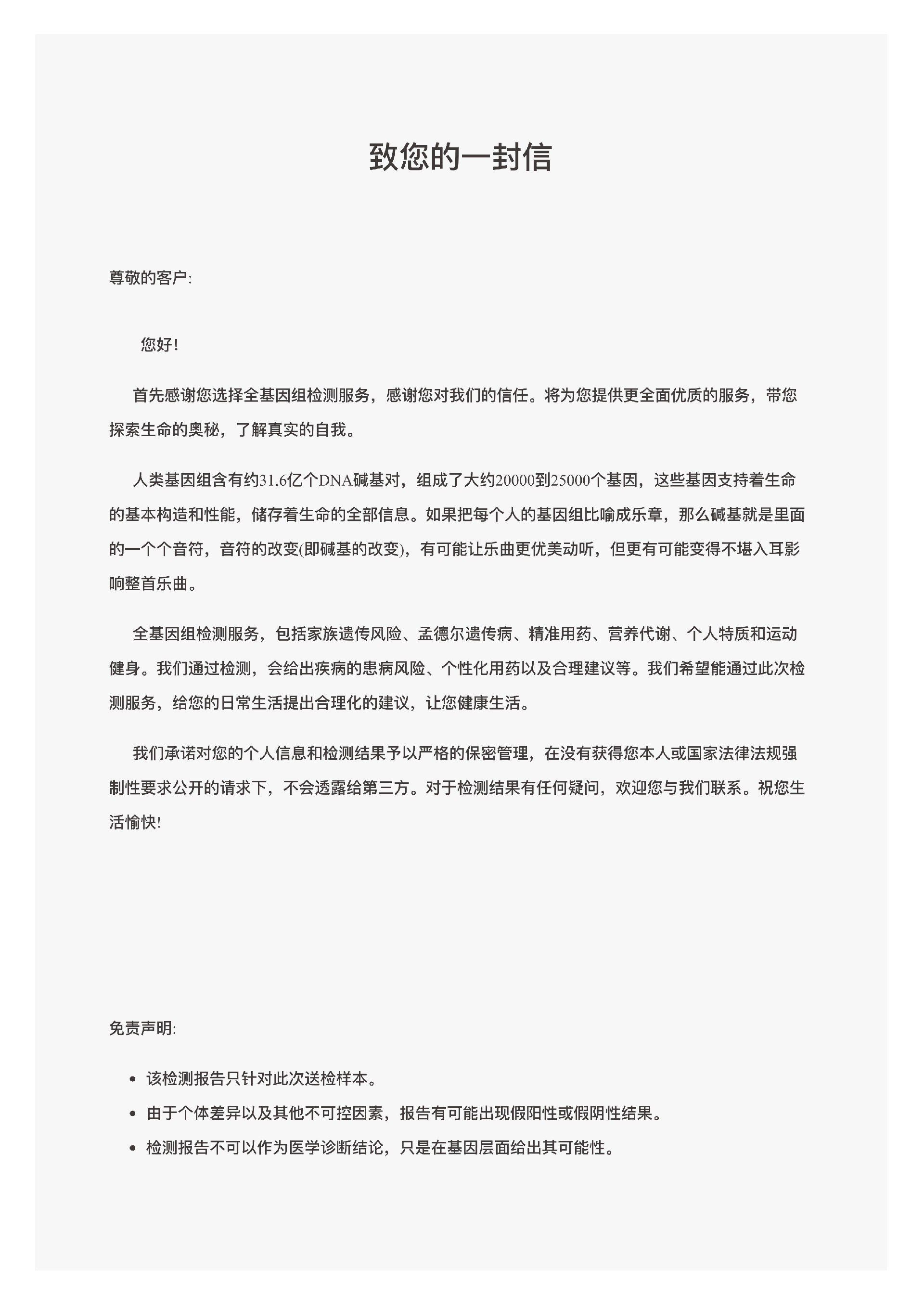 需特别说明的是,本报告仅针对本次送检样本,因个体差异可能存在假阳性或假阴性,且不能作为医学诊断结论,仅为基因层面的风险提示。我们已对您的个人信息与检测结果严格保密,未经您本人或法律法规要求,绝不向第三方披露。