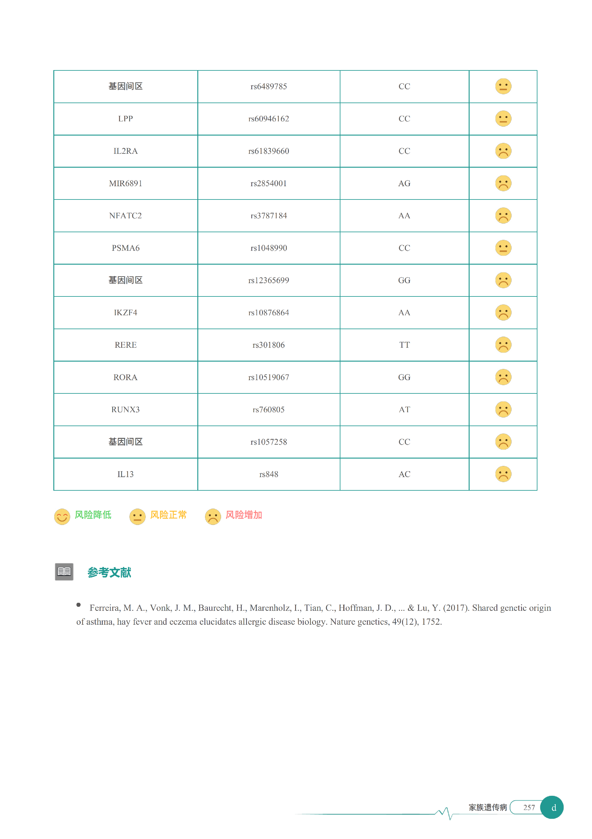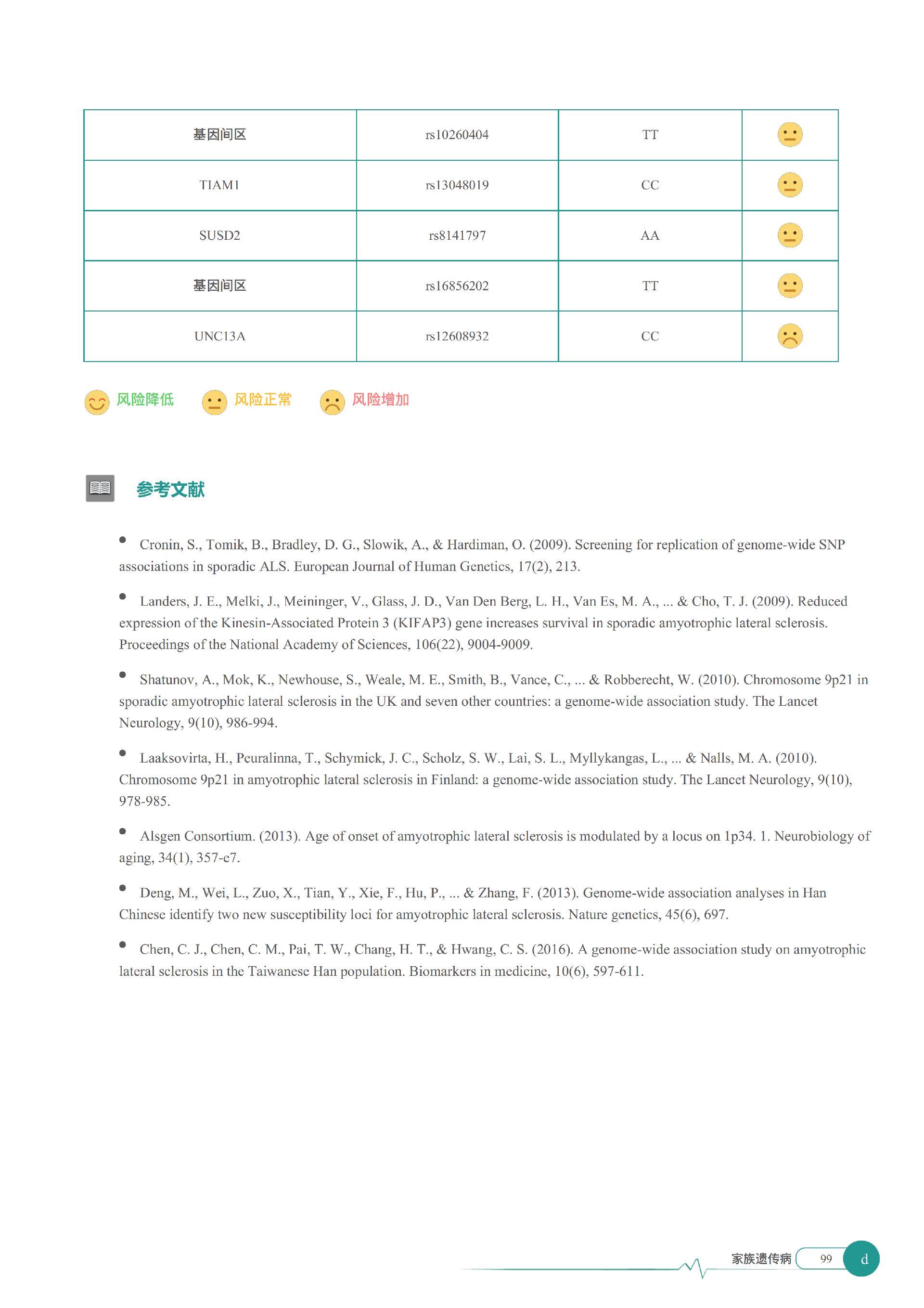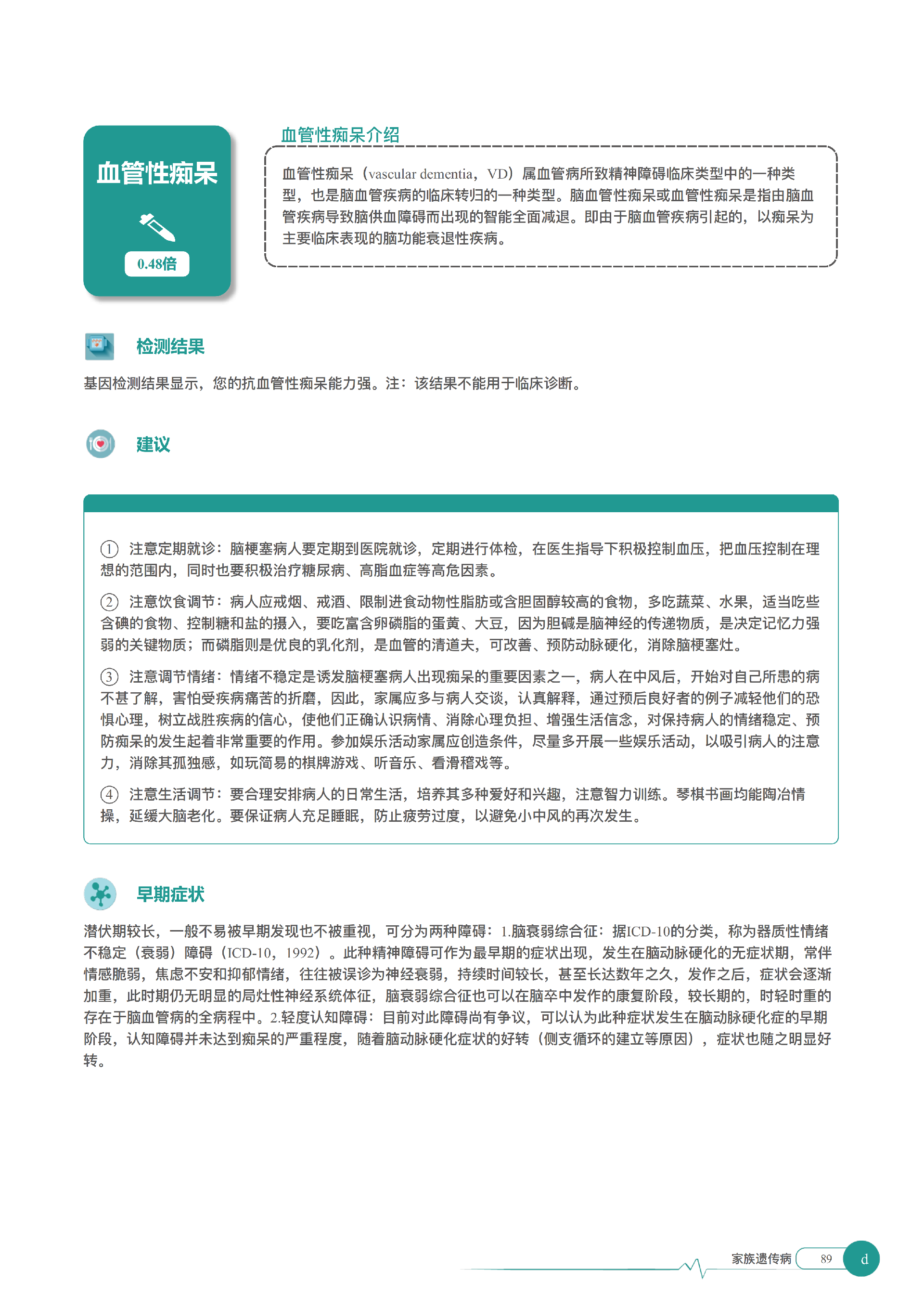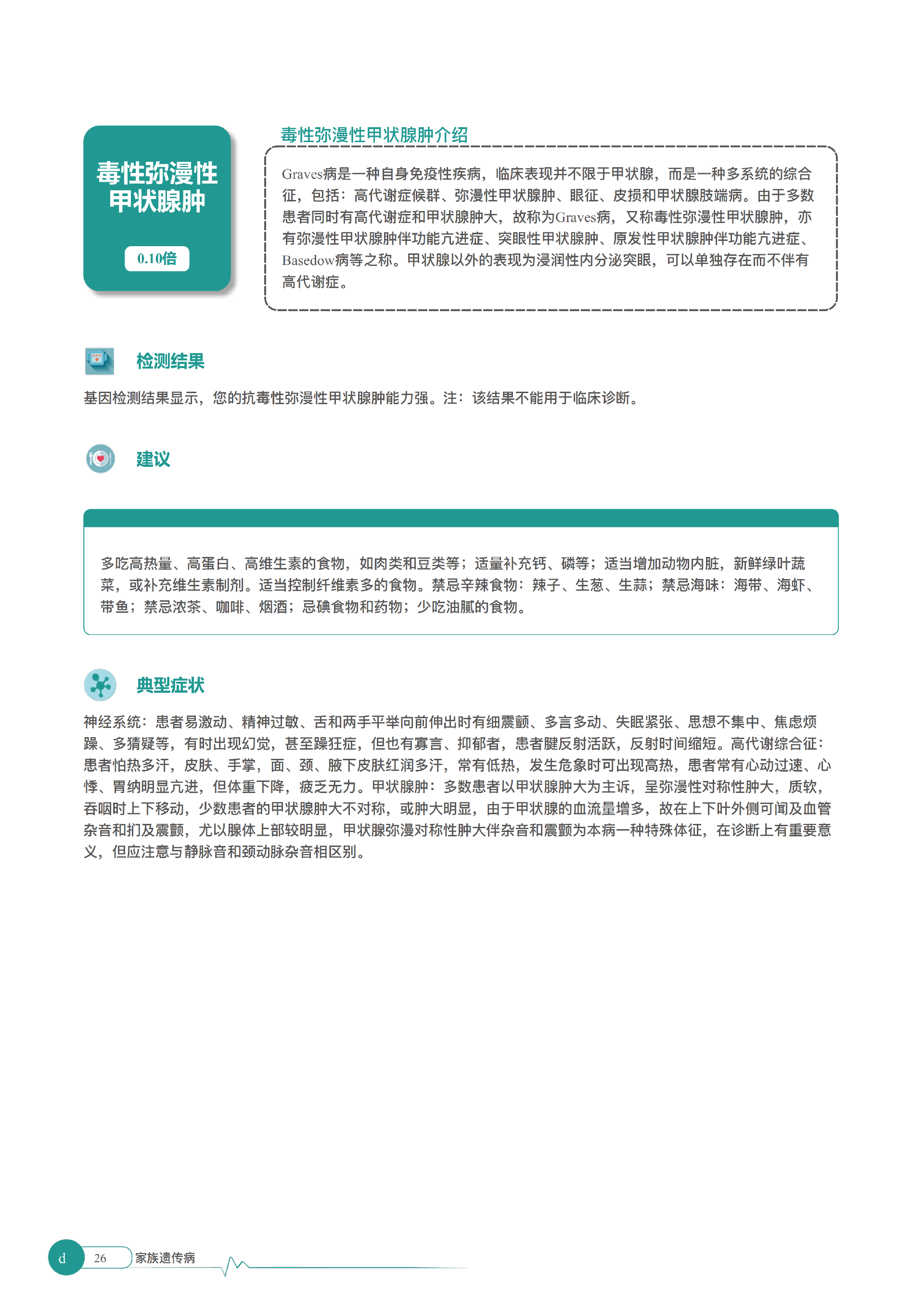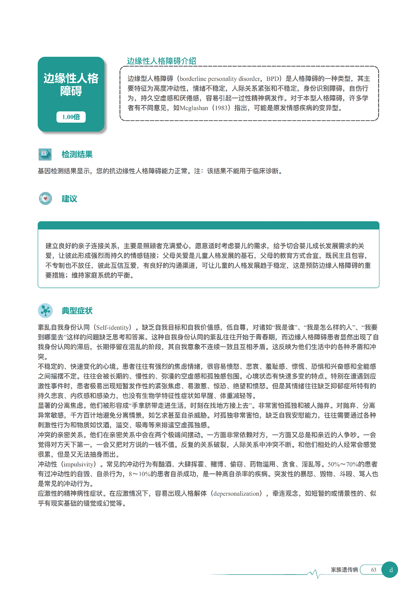 需特别说明的是,本报告仅针对本次送检样本,因个体差异可能存在假阳性或假阴性,且不能作为医学诊断结论,仅为基因层面的风险提示。我们已对您的个人信息与检测结果严格保密,未经您本人或法律法规要求,绝不向第三方披露。