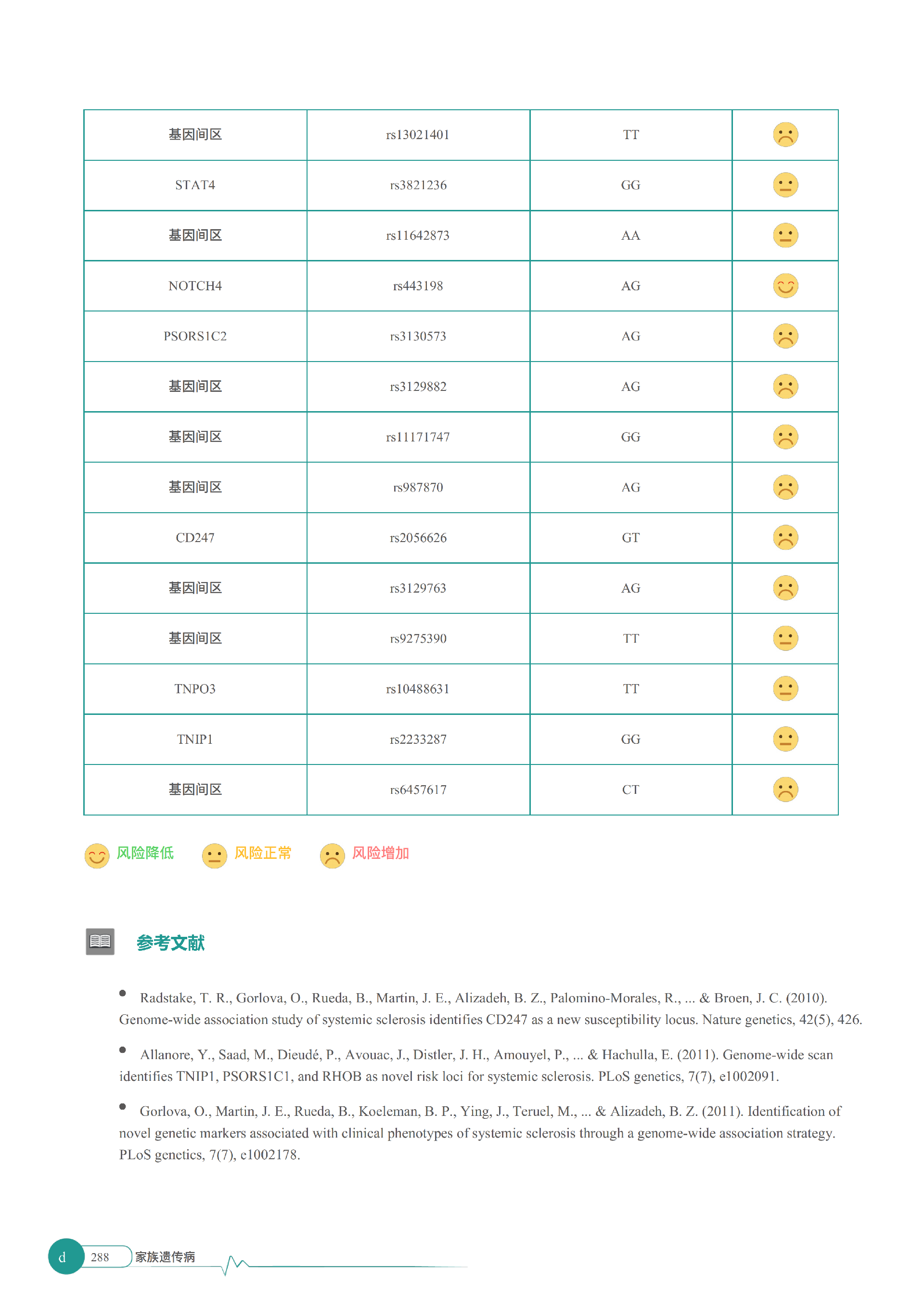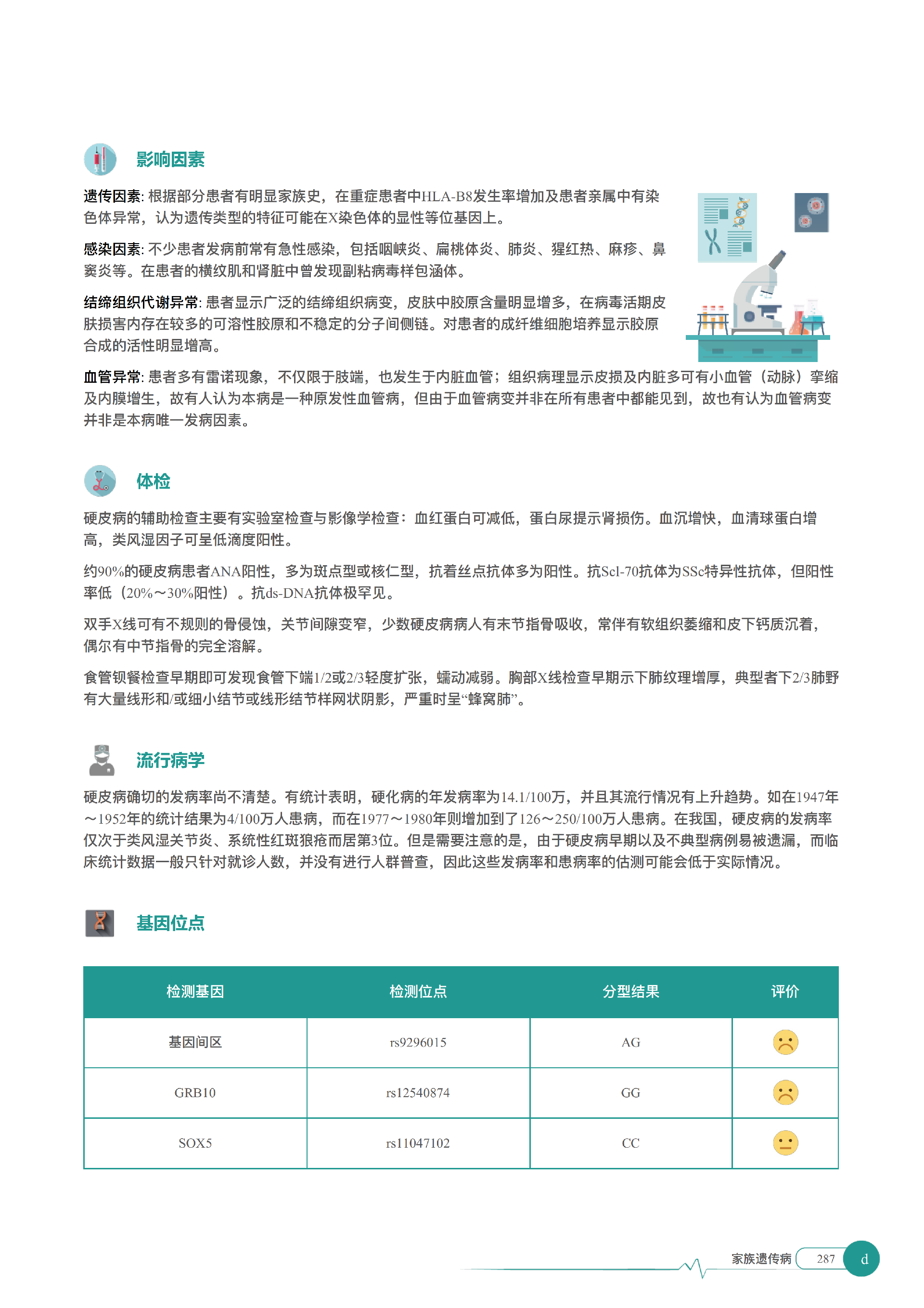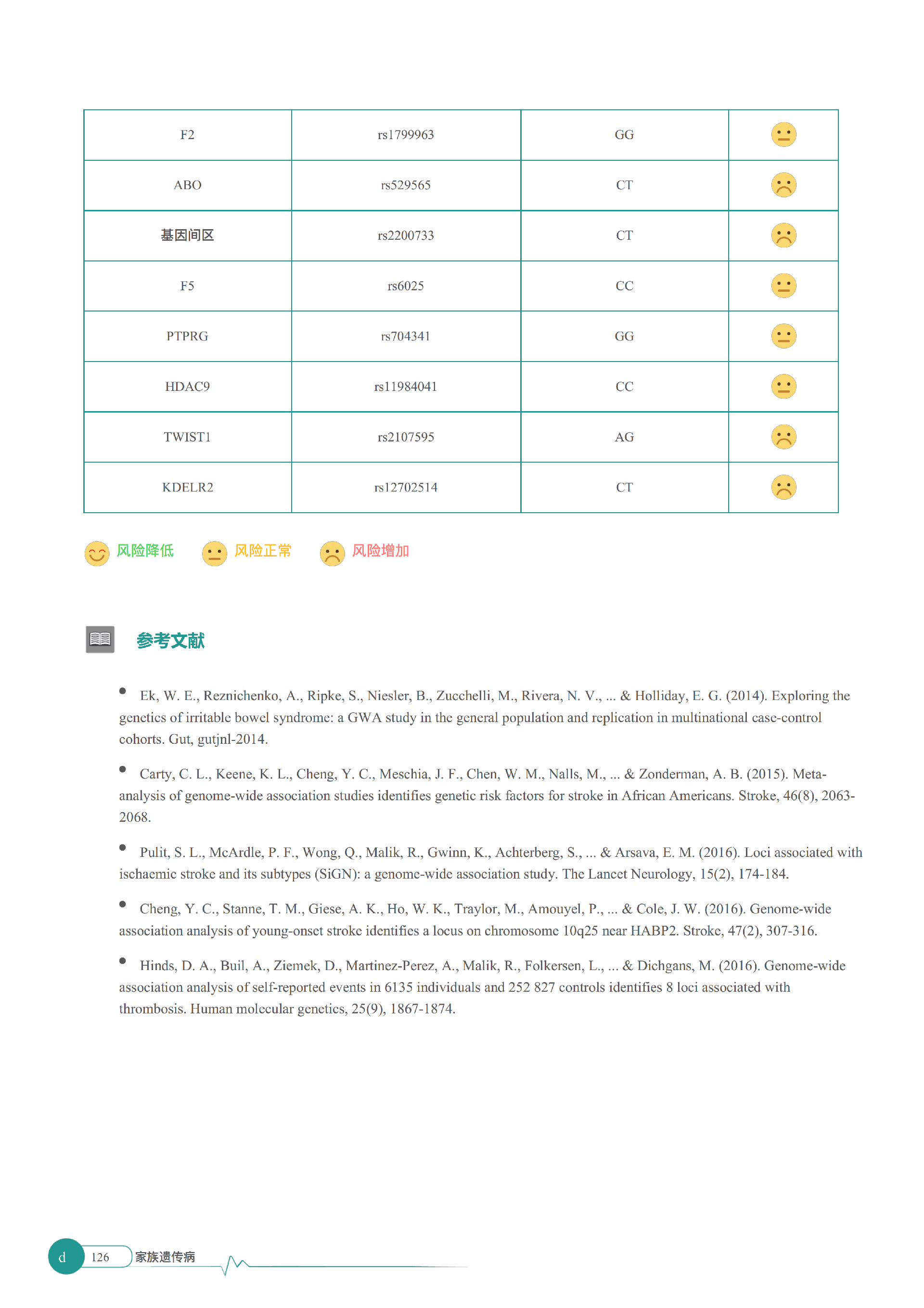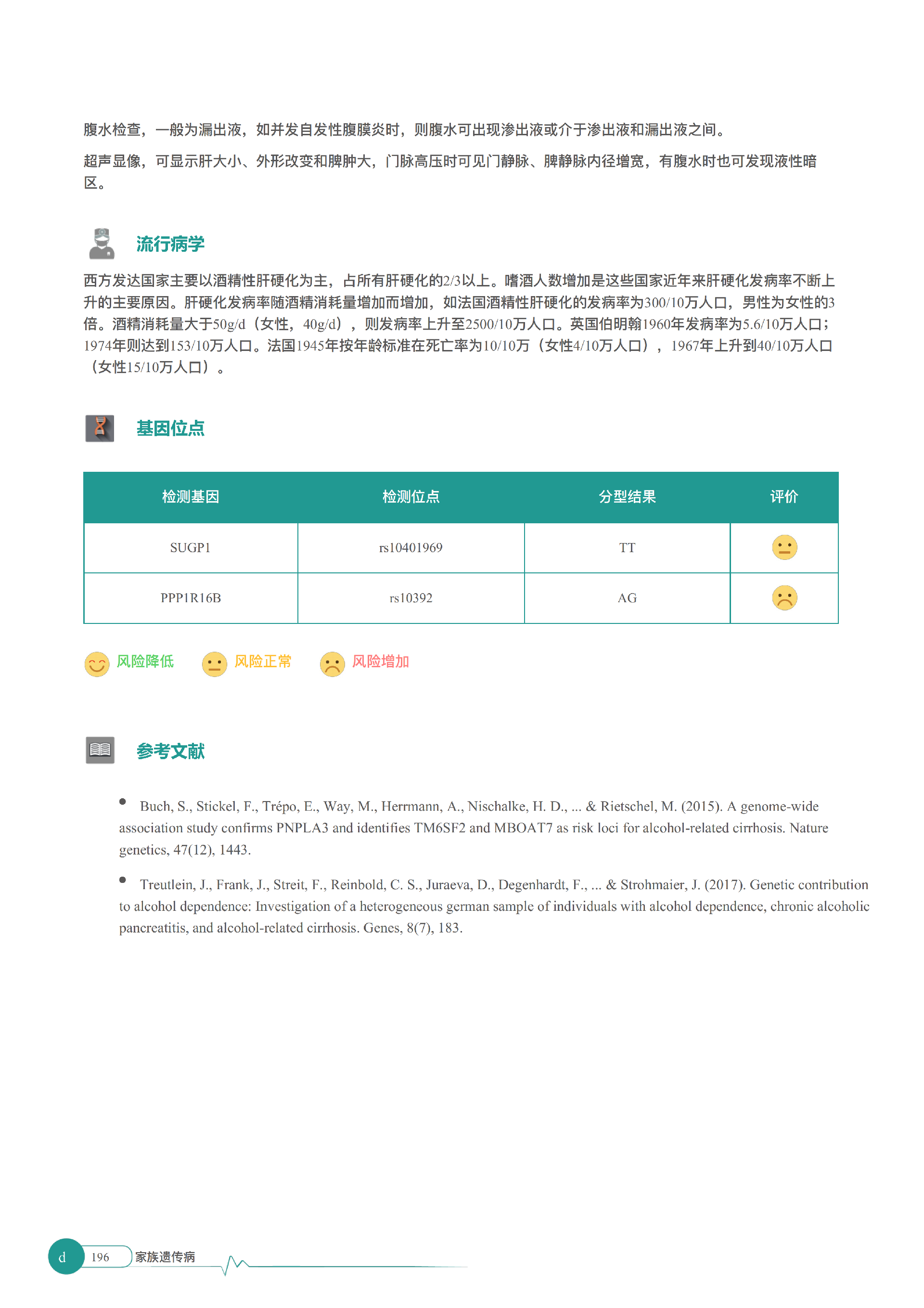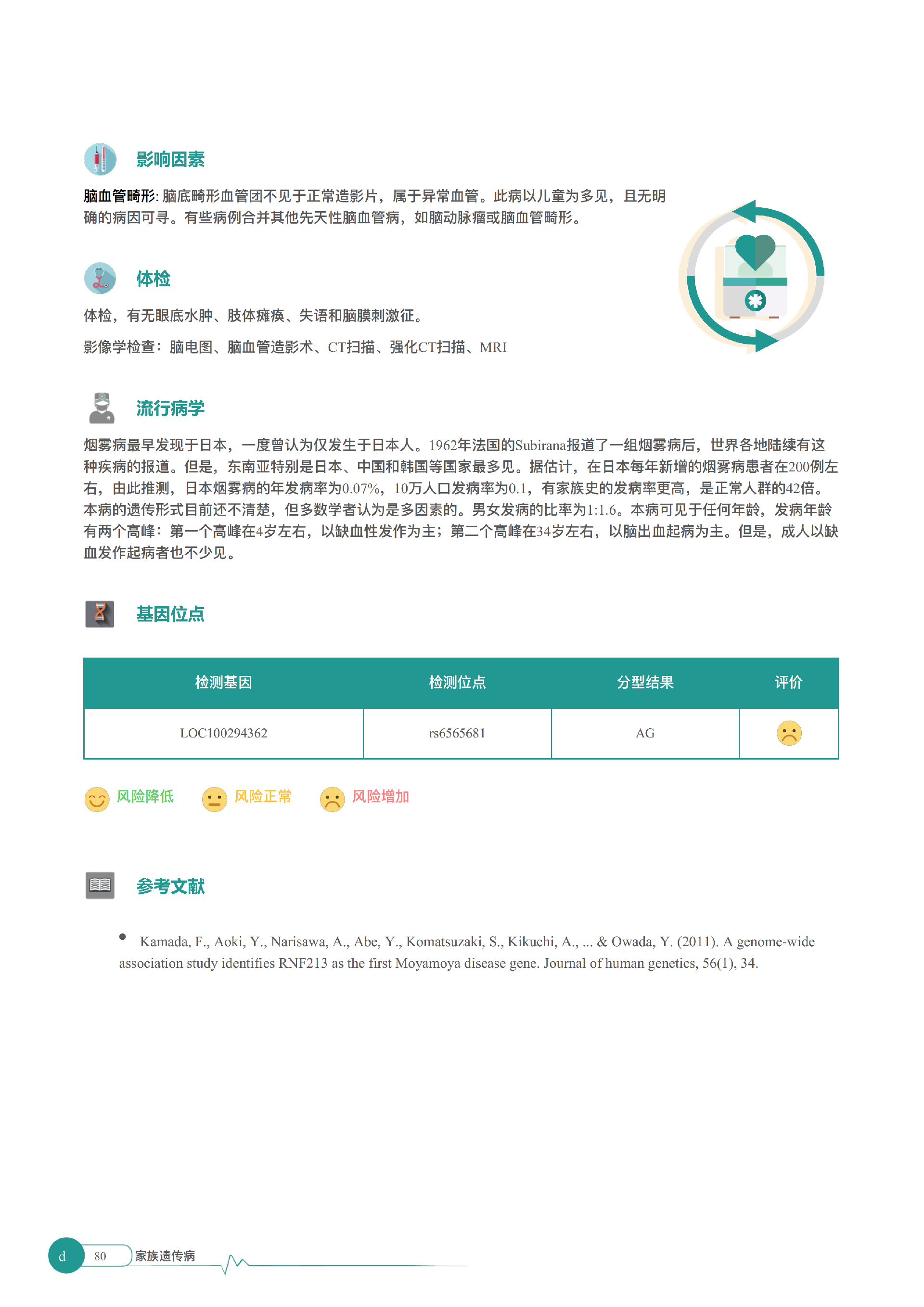 在核心的家族遗传风险筛查中,多项疾病风险值得重点关注:特发性膜性肾病(风险倍数 10.20 倍,终生患病率 10.20%)、老年性黄斑病变(9.92 倍,14.88%)的风险显著高于正常人群;掌腱膜挛缩症(7.19 倍)、非酒精性脂肪性肝病(4.90 倍)等疾病的遗传倾向亦需警惕;此外,静脉血栓栓塞(2.02 倍)、外周动脉病变(1.97 倍)等循环系统疾病,以及睡眠脚动症(2.38 倍)、妥瑞症(1.82 倍)等神经系统疾病,其风险也高于平均水平。风险倍数高于 1 代表患病概率超常人,低于 1 则更具抗病优势,需注意的是,风险高低不代表必然发病,仍需结合环境、生活习惯等因素综合判断。