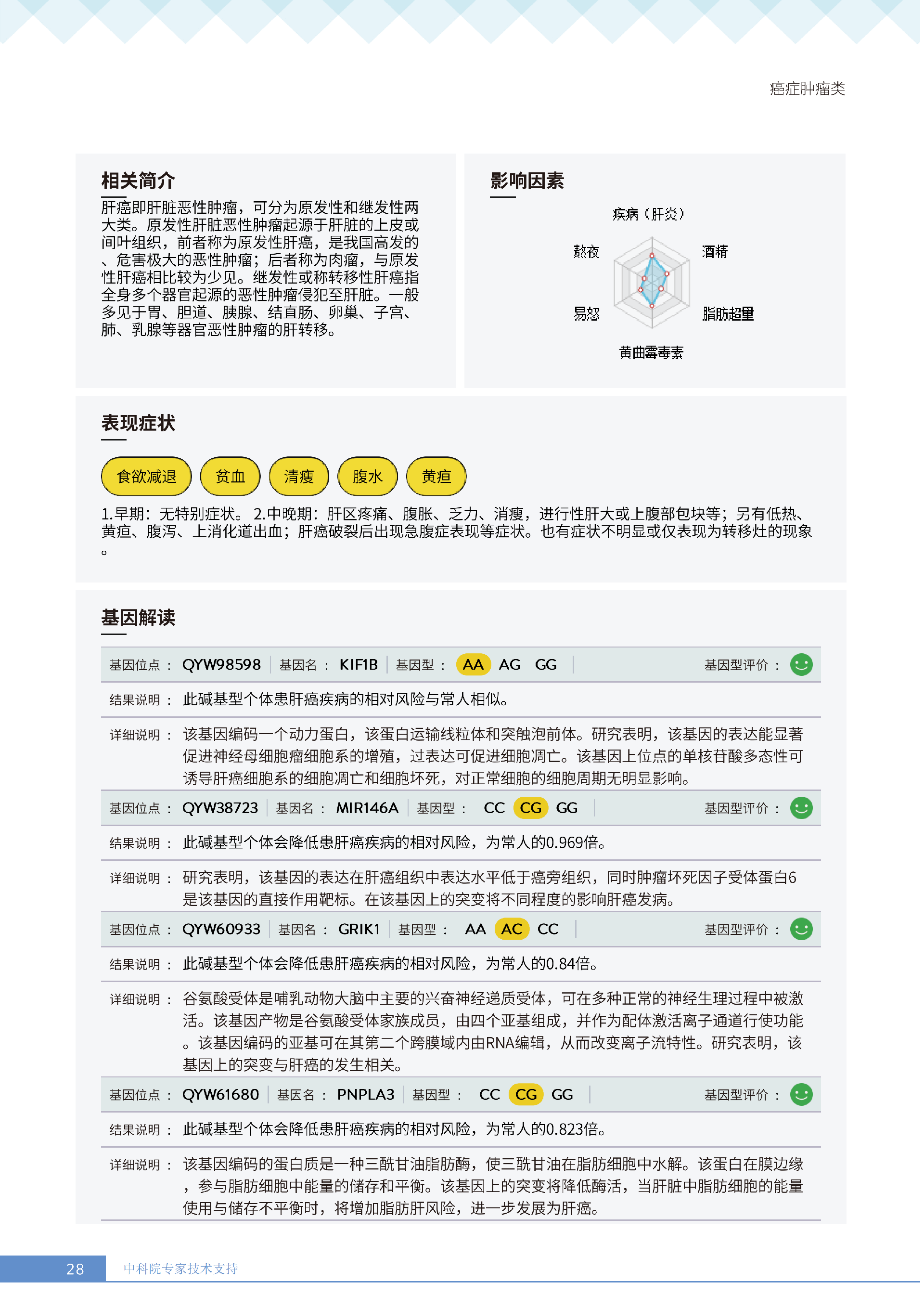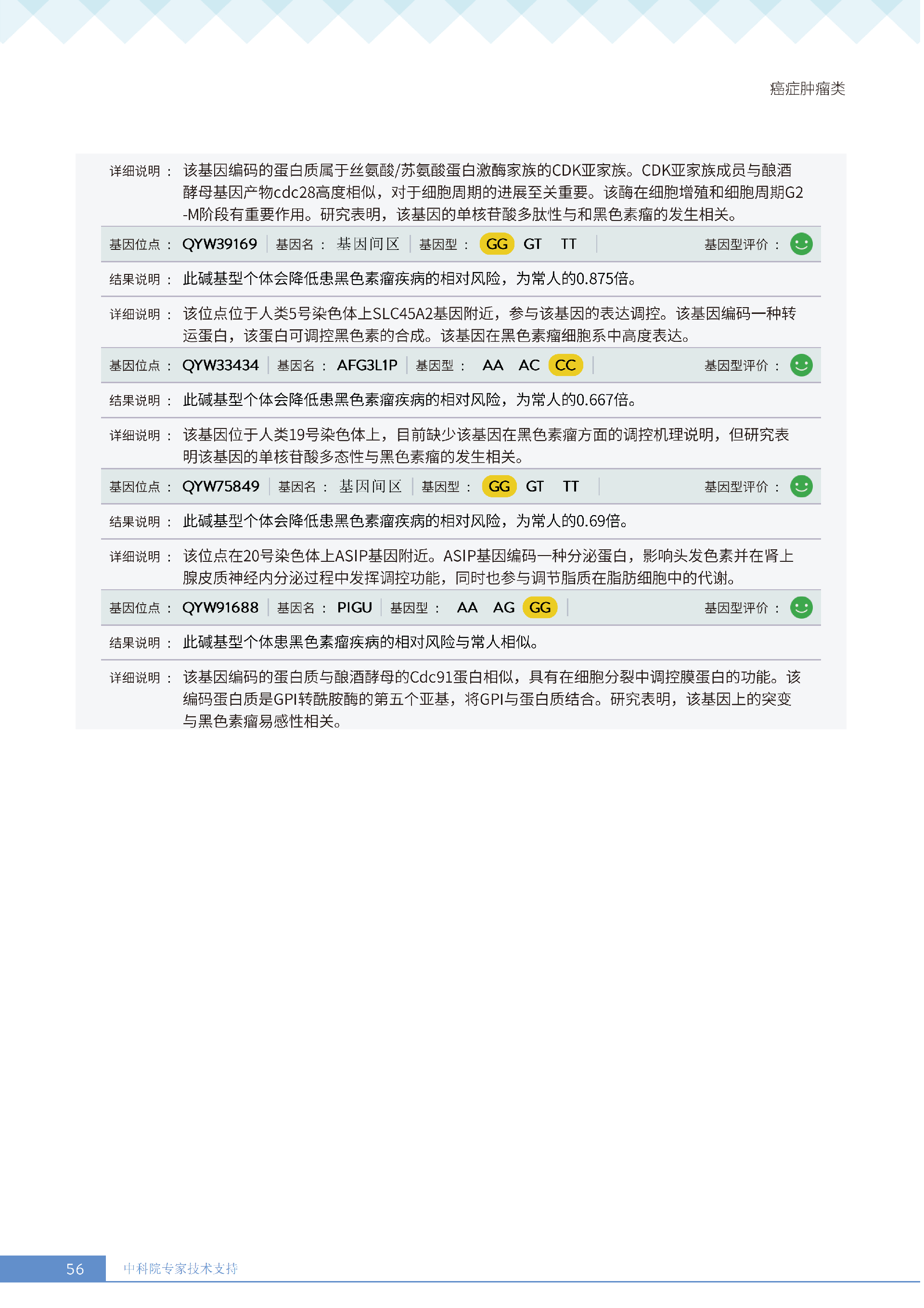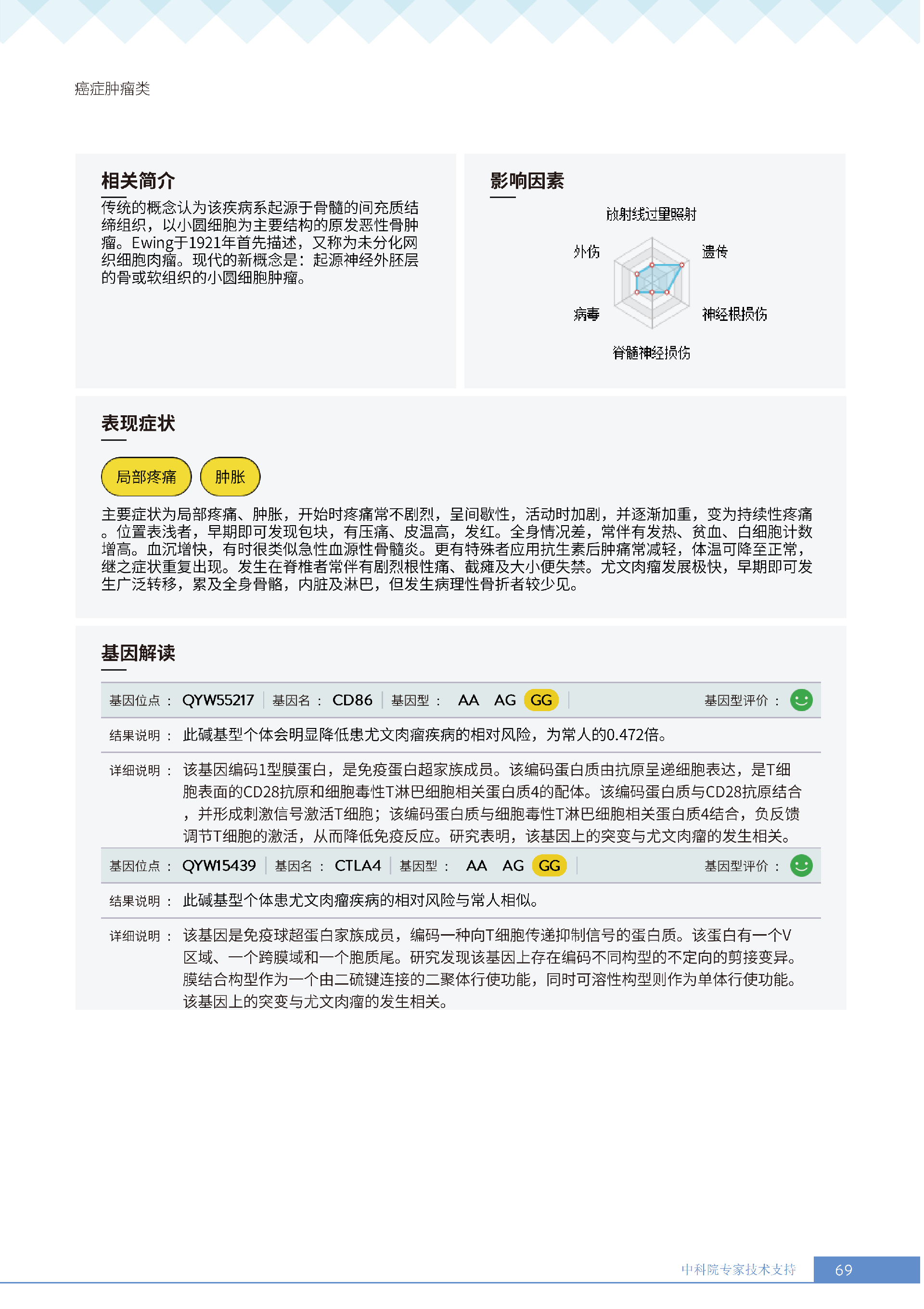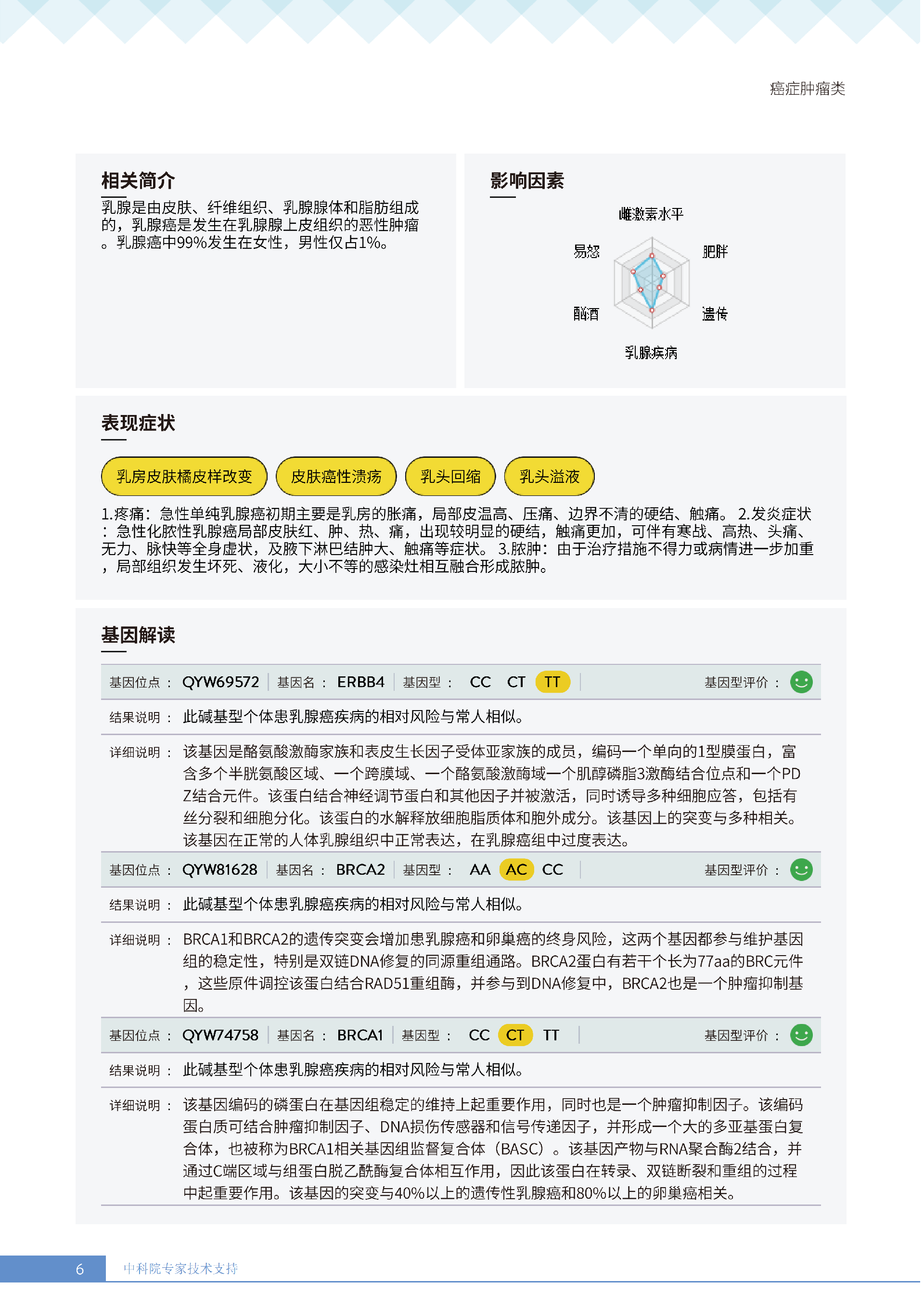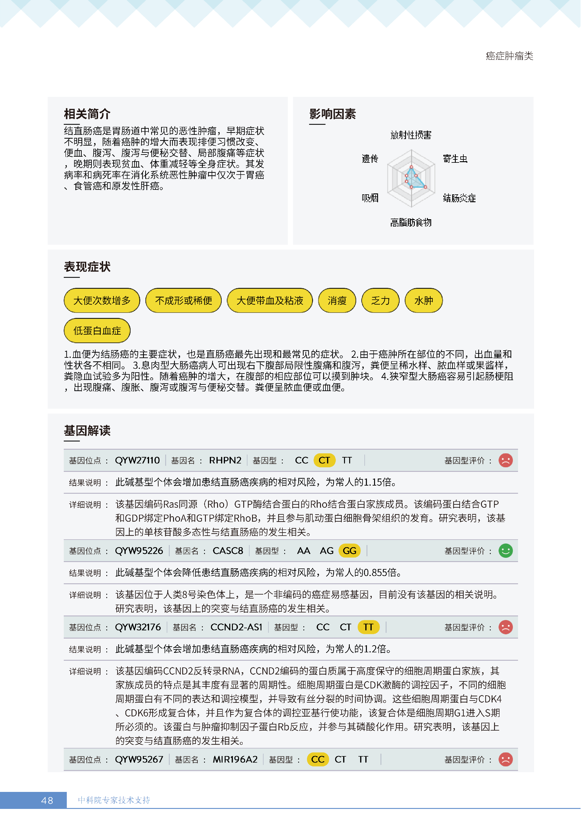 更重要的是,癌症筛查能精准适配个体差异,避免 “一刀切” 的盲目预防。有人像王女士一样,抗黑色素瘤能力强(88.61% 人群同水平),筛查能帮她明确 “无需过度焦虑此项”,可将精力放在薄弱项上;有人可能抗肺癌能力弱,筛查则会提示避免空气污染、定期做肺部 CT—— 它不是让所有人都陷入 “恐癌焦虑”,而是基于每个人的基因、年龄、生活环境等,画出 “个性化风险地图”,让预防有重点、干预有方向。