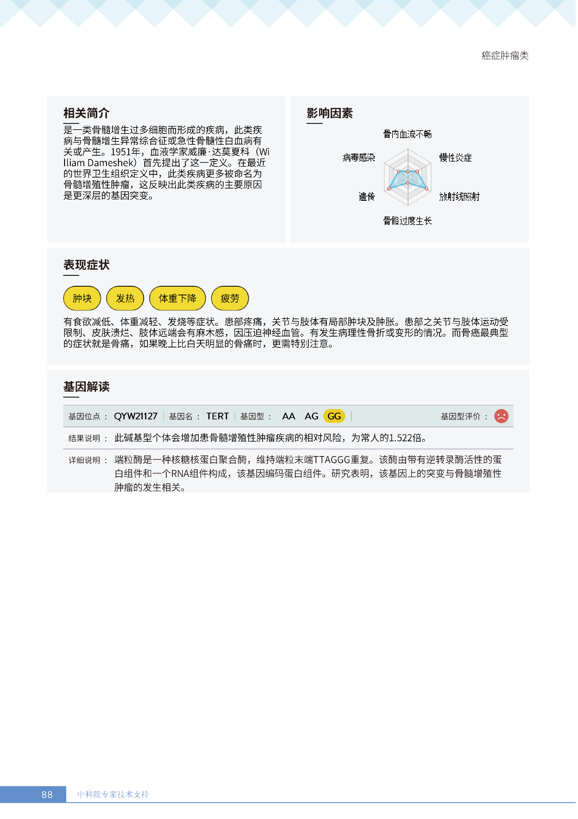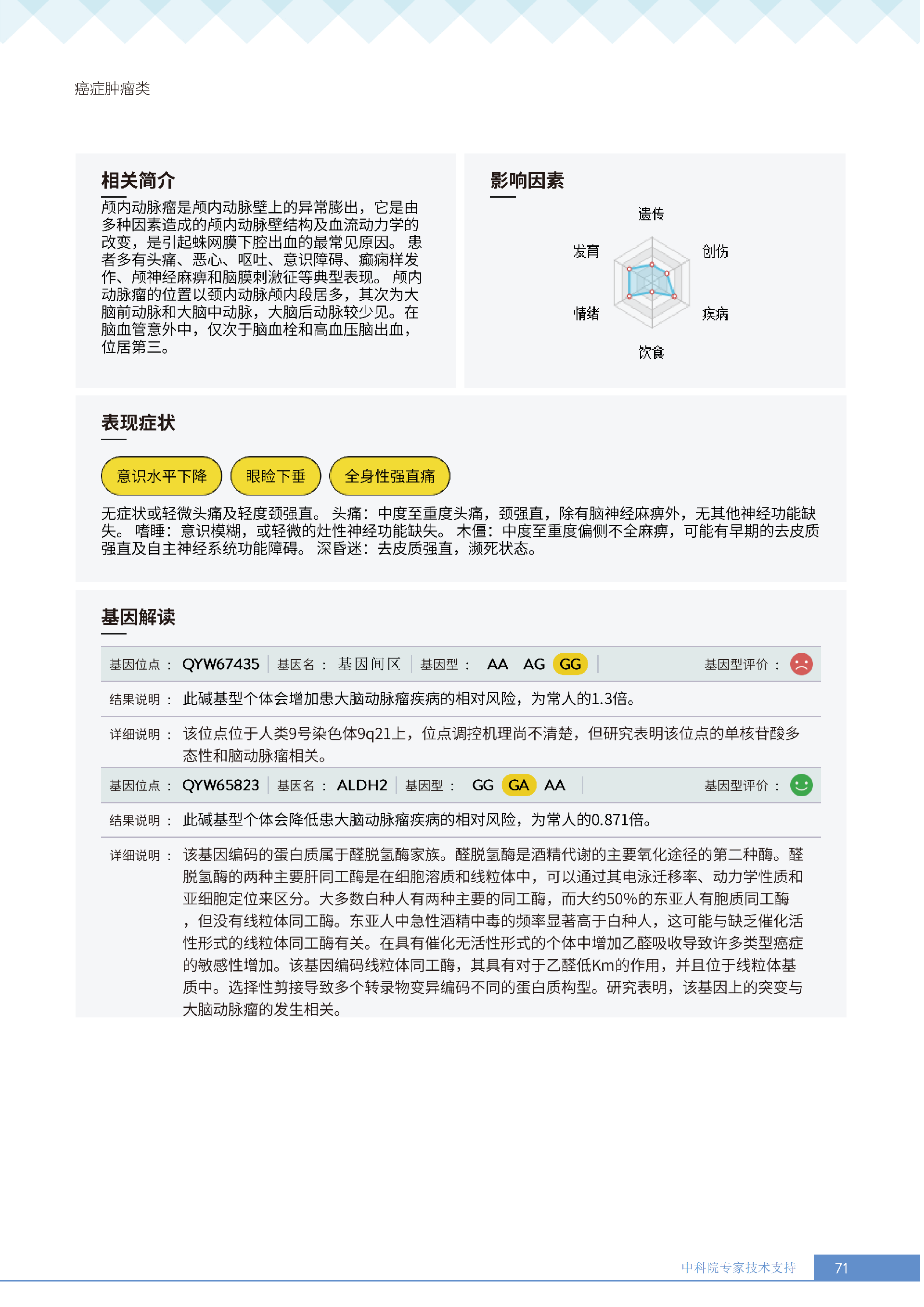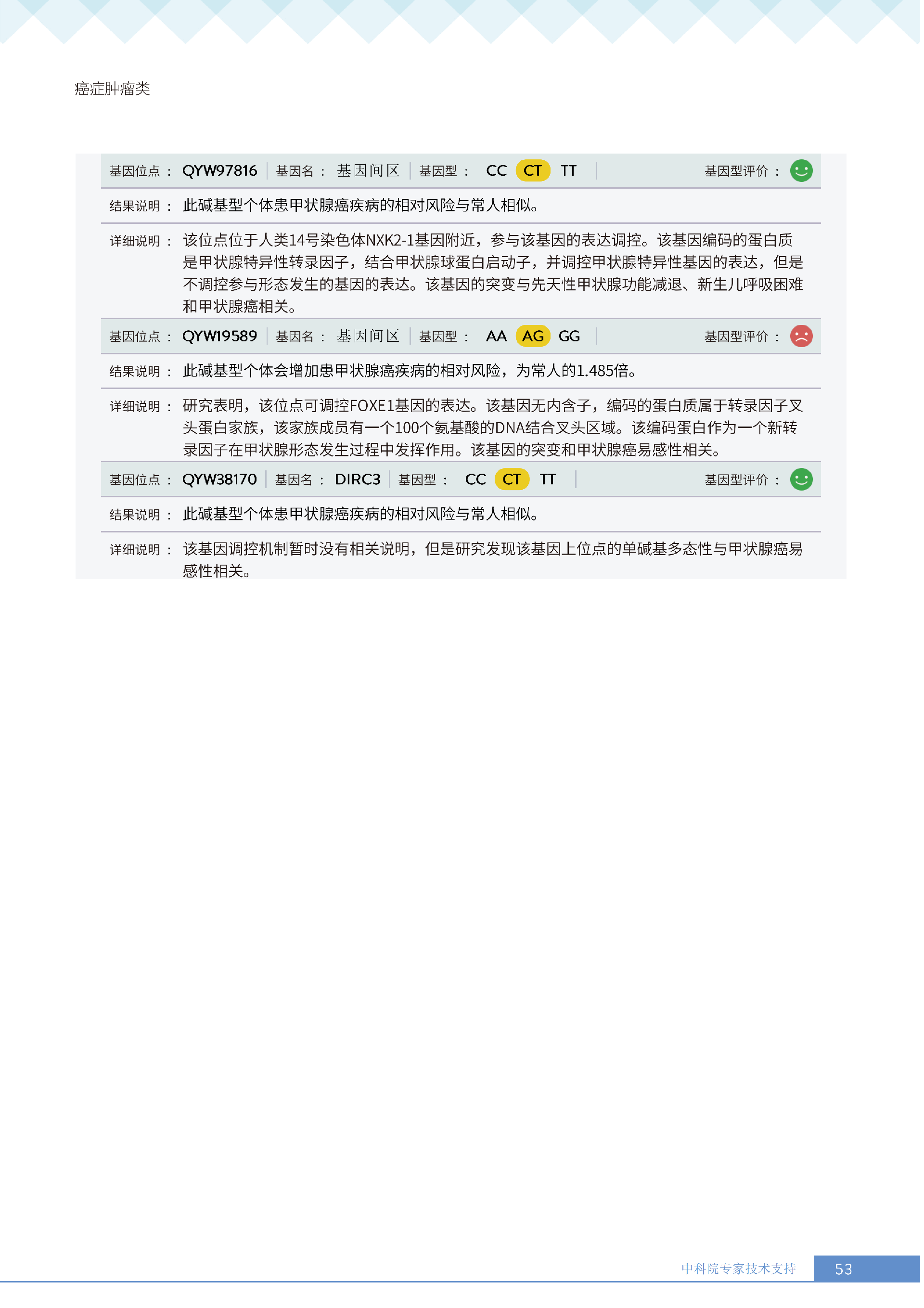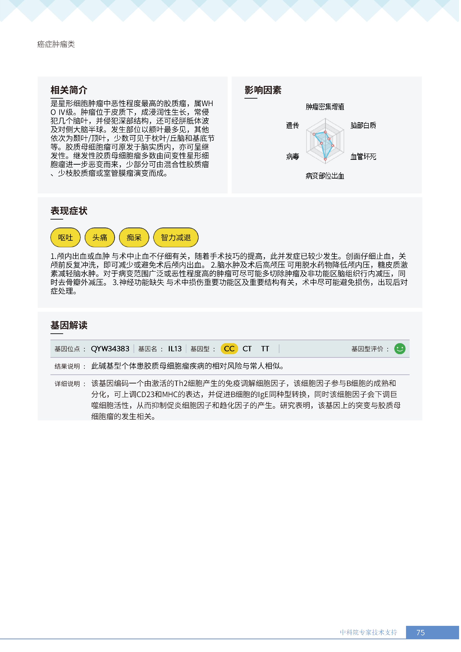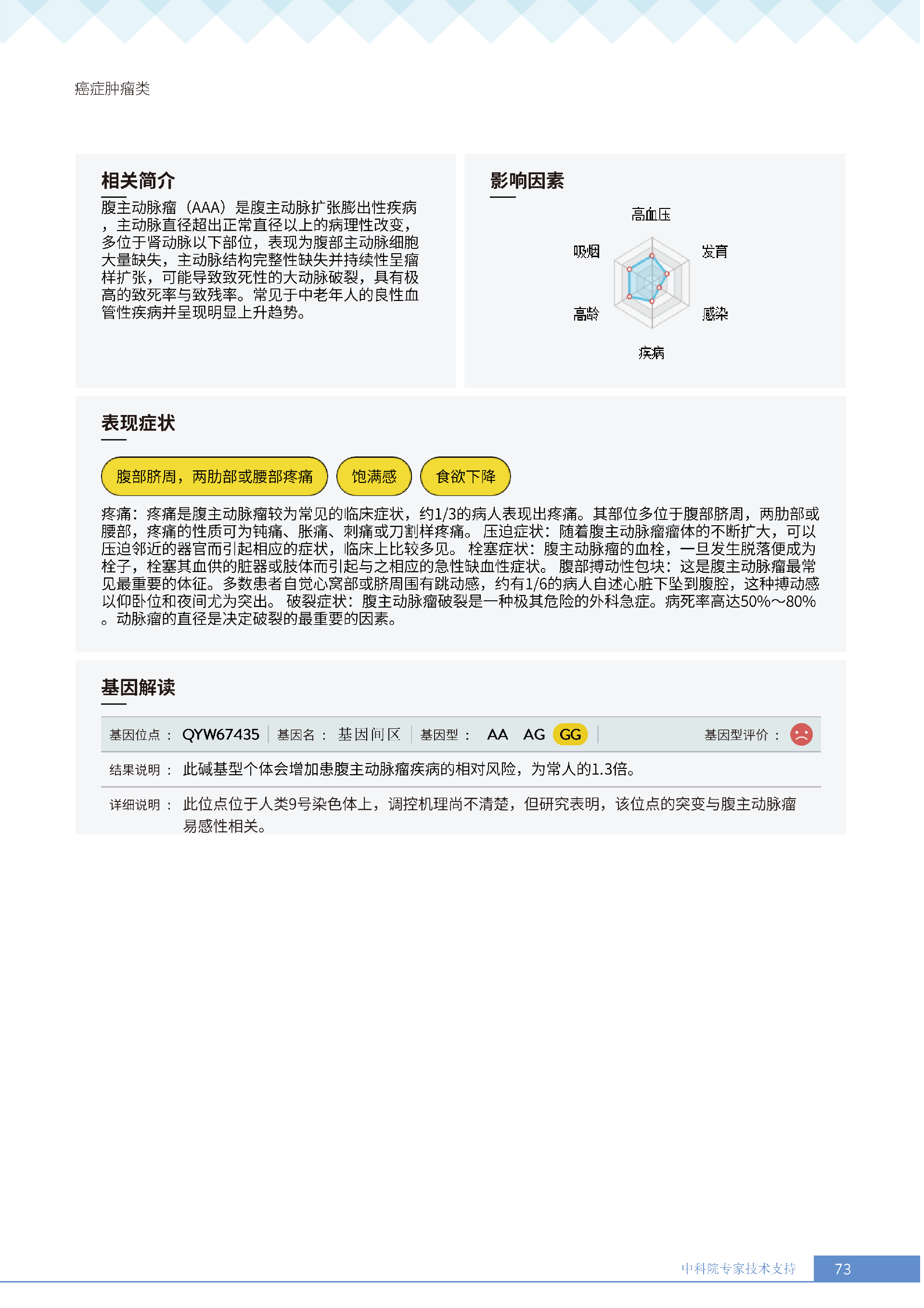更重要的是,癌症筛查能精准适配个体差异,避免 “一刀切” 的盲目预防。有人像王女士一样,抗黑色素瘤能力强(88.61% 人群同水平),筛查能帮她明确 “无需过度焦虑此项”,可将精力放在薄弱项上;有人可能抗肺癌能力弱,筛查则会提示避免空气污染、定期做肺部 CT—— 它不是让所有人都陷入 “恐癌焦虑”,而是基于每个人的基因、年龄、生活环境等,画出 “个性化风险地图”,让预防有重点、干预有方向。